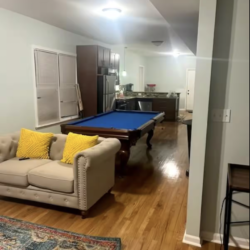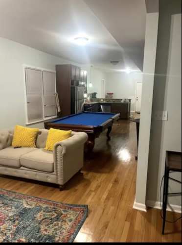 The fully-equipped kitchen boasts modern appliances. After a long day of studying or work, take a break and play a game of pool in the spacious living room.